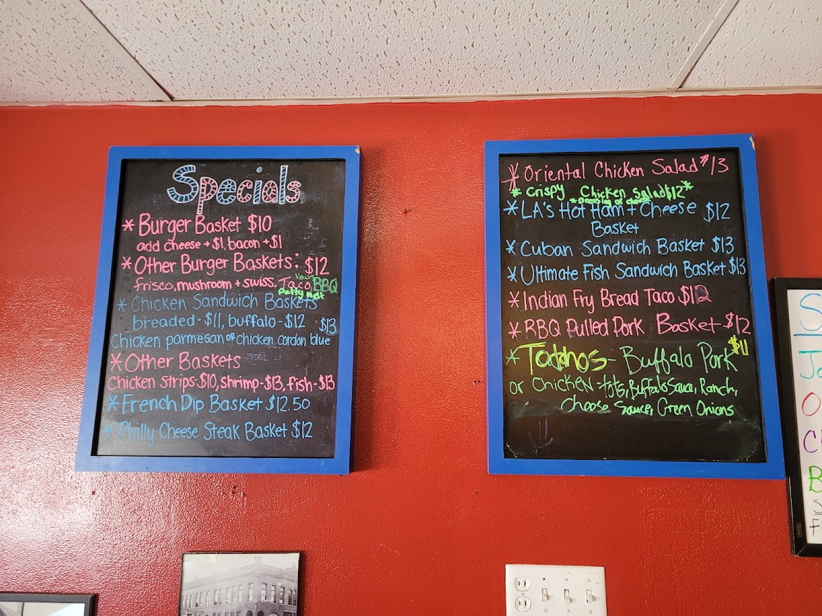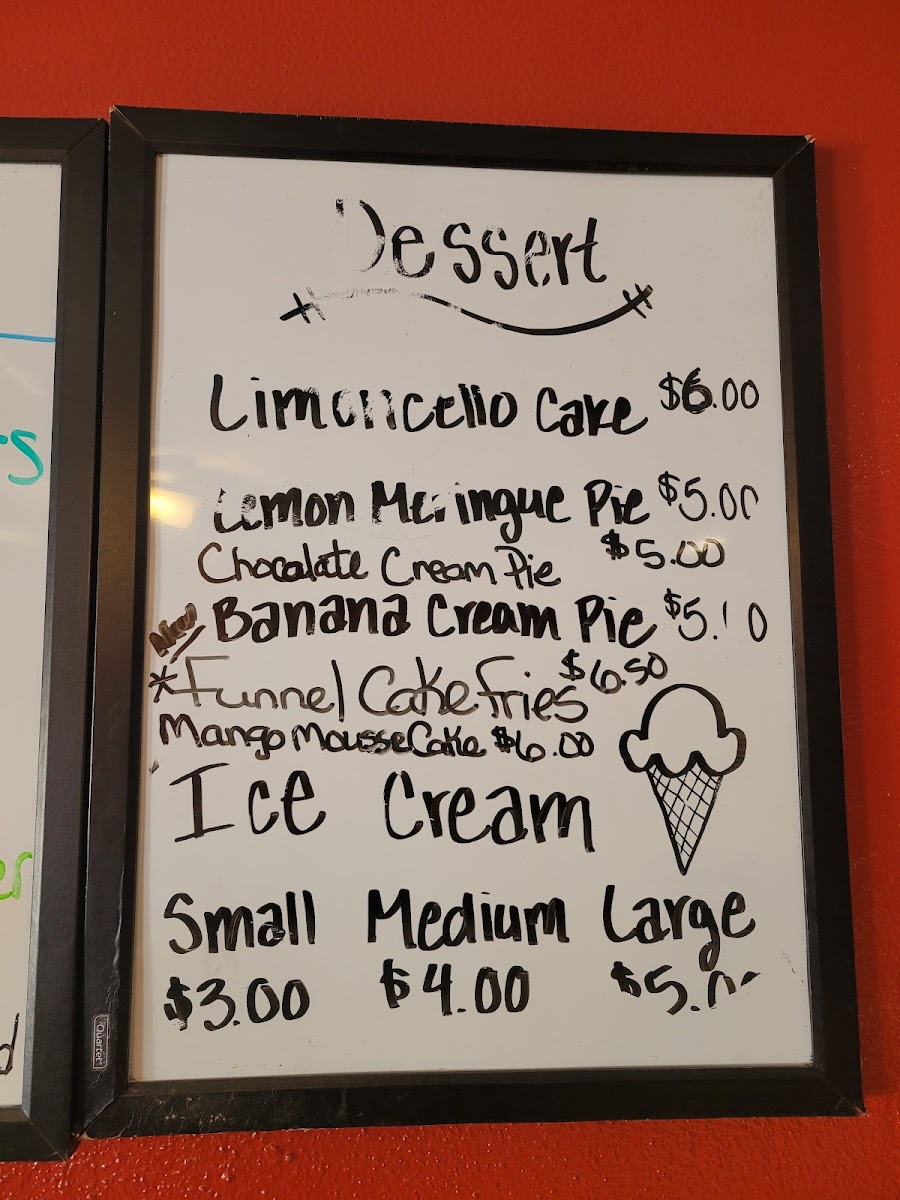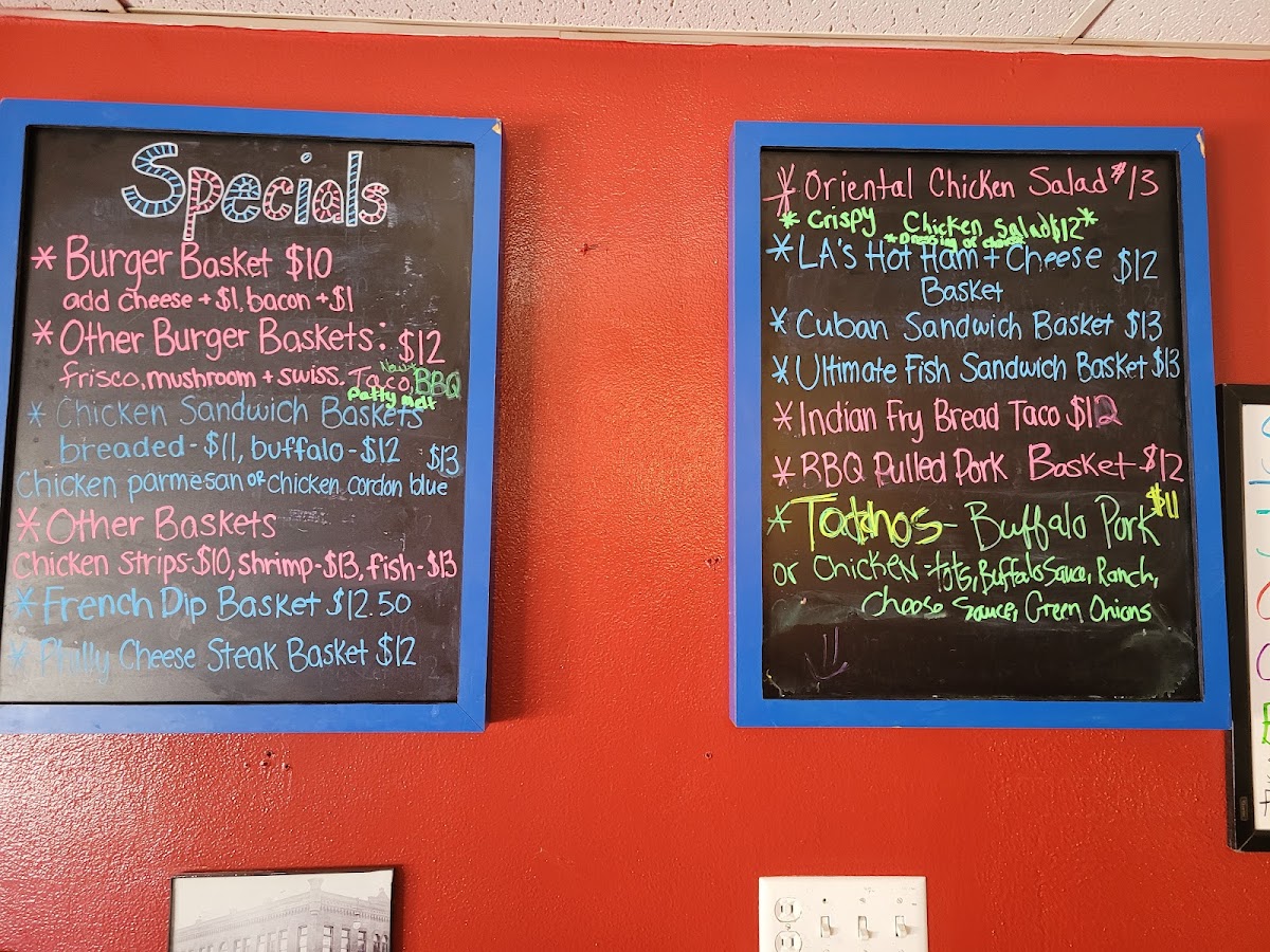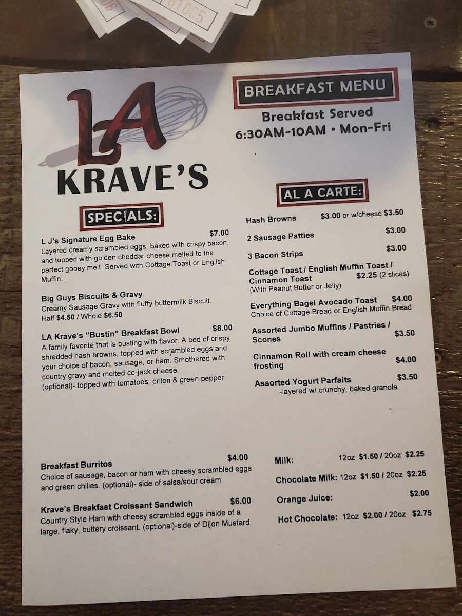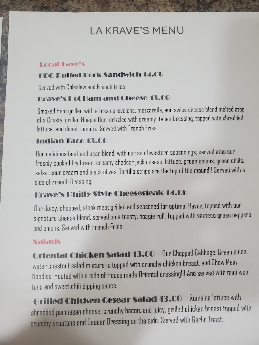 “Dưới đây là thông tin về menu nhà hàng…” but only provided the headings LA Kraves Menu, Sides, Desserts, without listing any specific dishes or prices.